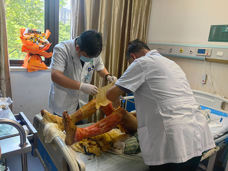 2025年7月8日,中國燒傷創(chuàng)瘍雜志編委,燒傷創(chuàng)瘍再生醫(yī)療技術(shù)臨床專家張強(qiáng),應(yīng)邀前往鳳陽縣人民醫(yī)院,對一例40%多的大面積燒傷病人和一例糖尿病足患者進(jìn)行臨床會診,張強(qiáng)主任親自示范再生醫(yī)療技術(shù)創(chuàng)面清創(chuàng)換藥流程,強(qiáng)調(diào)了換藥過程中的注意事項(xiàng),并與蔣主任交流了綜合治療方案,再生醫(yī)療技術(shù)是中西醫(yī)結(jié)合創(chuàng)面治療的典范,其推廣應(yīng)用將極大造福燒傷及慢性創(chuàng)面患者。