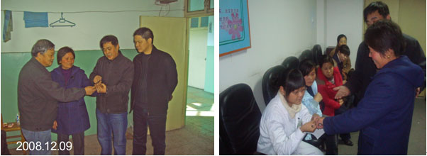 同任建生醫(yī)生對病人會診指出注意事項                           向與會醫(yī)務人員展示美寶速愈貼治療斷指再生技術