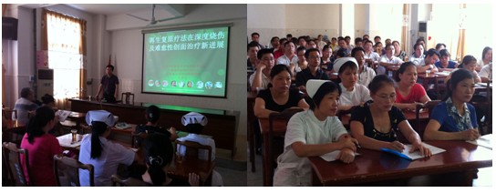 2012年6月1日下午,經(jīng)茂名市衛(wèi)生局批準(zhǔn),應(yīng)該醫(yī)院醫(yī)務(wù)科盧科長(zhǎng)邀請(qǐng),中國(guó)中西醫(yī)結(jié)合學(xué)會(huì)燒傷專業(yè)委員會(huì)常委兼秘書(shū),北京美寶燒傷創(chuàng)瘍研究所副所長(zhǎng)、第二臨床研究部主任,《中國(guó)燒傷創(chuàng)瘍雜志》副總編輯王洪生研究員到該醫(yī)院做“再生復(fù)原療法在難愈性創(chuàng)面治療新進(jìn)展”臨床專題學(xué)術(shù)講座,參會(huì)人員有來(lái)自信宜市各級(jí)醫(yī)療單位醫(yī)護(hù)代表近100人,在學(xué)術(shù)講座中,王主任首先向與會(huì)的專家介紹了著名生命科學(xué)家、醫(yī)學(xué)家、人體再生復(fù)原科學(xué)的創(chuàng)立者、再生復(fù)原療法的發(fā)明人徐榮祥教授近年來(lái)在再生醫(yī)學(xué)領(lǐng)域所取得的重大實(shí)驗(yàn)及臨床研究成果,而后王主任結(jié)合了大量的臨床病例圖片及錄像資料,就再生復(fù)原療法在難愈性創(chuàng)瘍創(chuàng)面治療上的一種新方法,對(duì)不同深度的燒傷創(chuàng)面及各類難愈性創(chuàng)傷、潰瘍創(chuàng)面的規(guī)范化處理方法與技巧、注意事項(xiàng)等進(jìn)行了細(xì)致地講解,并強(qiáng)調(diào)創(chuàng)面處理要大膽清創(chuàng)、減壓、去除壞死組織,并保持創(chuàng)面生理的濕潤(rùn)環(huán)境,實(shí)現(xiàn)創(chuàng)面的再生復(fù)原,并建議對(duì)病人深達(dá)真皮層以下愈合后創(chuàng)面應(yīng)進(jìn)行防疤處理治療。