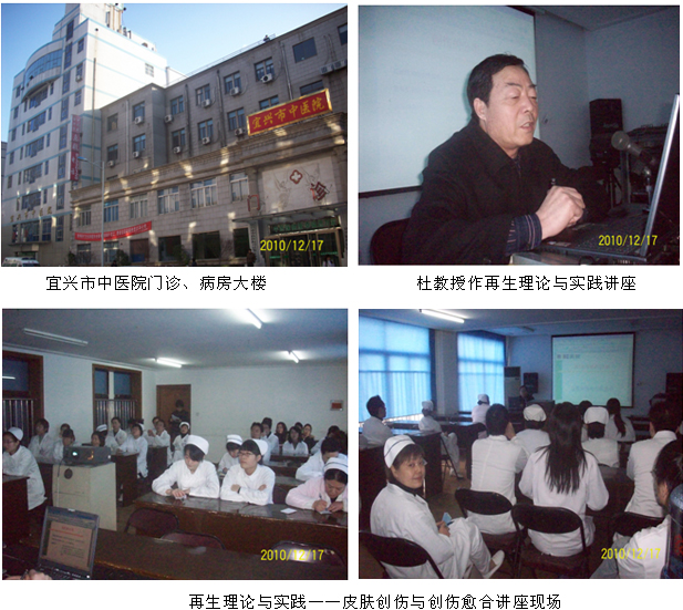 值2010年末歲首之際,中國(guó)中西醫(yī)結(jié)合學(xué)會(huì)燒傷專(zhuān)業(yè)委員會(huì)常委、北京美寶燒傷創(chuàng)瘍研究所臨床部杜福勤教授應(yīng)宜興市中醫(yī)院醫(yī)務(wù)科王科長(zhǎng)和呂建明副院長(zhǎng)的邀請(qǐng),于2010年12月17日下午在該院會(huì)議室舉辦再生醫(yī)學(xué)理論與技術(shù)實(shí)踐學(xué)術(shù)講座。講座由該院醫(yī)務(wù)科王科長(zhǎng)主持,參加講座的有該院外科、內(nèi)科、骨科、婦產(chǎn)科、皮膚科、肛腸科、兒科以及有關(guān)技術(shù)輔助科室120余人,呂建明副院長(zhǎng)百忙中抽時(shí)間參加了講座并和杜主任進(jìn)行了深入交流。