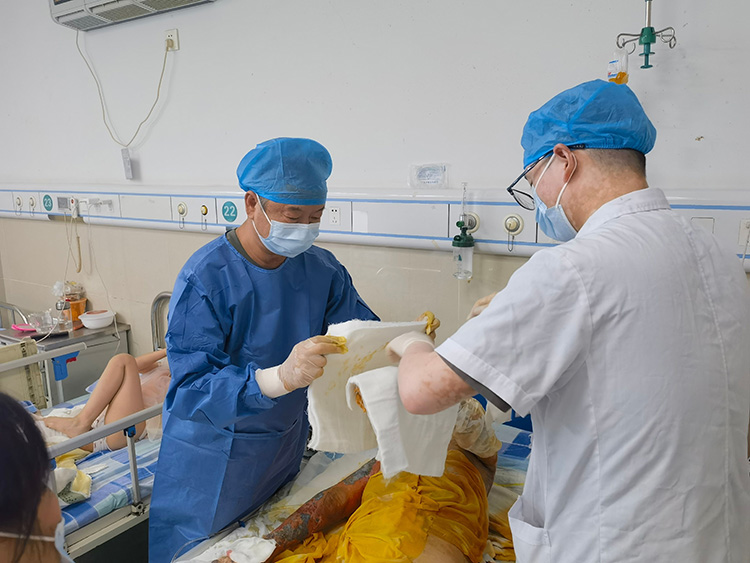 2024年9月9日-10日,《中國燒傷創(chuàng)瘍雜志》編委、燒傷創(chuàng)瘍再生醫(yī)療技術(shù)臨床專家張強教授應(yīng)邀來到南京鼓樓醫(yī)院集團安慶市石化醫(yī)院燒傷科,對該院最近收治的多例大面積燒傷病人會診,并現(xiàn)場示范規(guī)范換藥,受到醫(yī)患雙方一致好評!