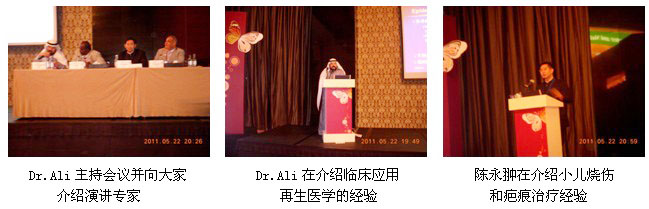 再生醫(yī)學(xué)專題會議由阿聯(lián)酋燒傷整形外科學(xué)會主席Dr. Ali Numanry主持,在簡短的開幕式上Dr.Ali向大家介紹了各位演講專家,然后馬上進入學(xué)術(shù)報告和交流議程。首先,Dr. Ali以“MEBT/MEBO---Burns Regenerative Therapy”(MEBT/MEBO---燒傷再生療法)為題,向大家介紹了他學(xué)習(xí)、應(yīng)用,再學(xué)習(xí)、應(yīng)用再生醫(yī)學(xué)的過程和體會:原來他一直都認為MEBO只是一個產(chǎn)品,只是應(yīng)用MEBO治療一些小面積淺度燒傷。不過,自從去年陳永翀教授安排他到北京見了徐教授,聽了徐教授的一番話后,尤其是到山東泰山醫(yī)學(xué)院的實地參觀、考察和交流后,心里豁然開朗,明白了再生醫(yī)學(xué)不僅僅是MEBO一個產(chǎn)品那么簡單,而是一整套全新的醫(yī)學(xué)體系?;氐降习莺笏匦掳凑赵偕t(yī)學(xué)的理論和技術(shù)規(guī)范要求治療患者,實現(xiàn)了中等面積深度燒傷的皮膚原位再生復(fù)原,并向大家展示了眾多的臨床實例,很具說服力。緊接著,陳永翀應(yīng)邀以:(1)、“A Retrospective Contrast Study of the Clinical Effects in Treating Pediatric Large Area and Deep Burns”;(2)、“Non-invasive Therapy in Scar Treatment----MEBO Scar Ointment”(“小兒大面積深度燒傷臨床治療效果的對照研究”和“疤痕的非侵入性療法---MEBO疤痕軟膏”)這2個題目為題,向各位臨床專家對照性的介紹了:(1)、再生醫(yī)學(xué)在治療小兒大面積深度燒傷的優(yōu)勢和臨床實用性;(2)、MEBO疤痕軟膏的細胞、組織調(diào)控再生機理和具體的臨床使用方法。演講內(nèi)容詳實、方法具體明了,受到歡迎。