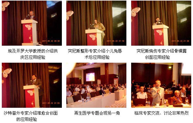 隨后,來自埃及、突尼斯、沙特、蘇丹的另外8個臨床專家和教授先后上臺演講,介紹他們近年來,特別是近3年來在中國專家的指導(dǎo)下應(yīng)用再生醫(yī)學(xué)治療燒傷、創(chuàng)傷、潰瘍、供皮區(qū)創(chuàng)面、骨裸露創(chuàng)面、外科感染創(chuàng)面、各科難愈合創(chuàng)面、頜面外科術(shù)后不愈合創(chuàng)面等,應(yīng)用再生醫(yī)學(xué)技術(shù)所取得的神奇臨床效果和經(jīng)驗。會場內(nèi)提問、討論和請教非常踴躍,整個會場的學(xué)術(shù)氛圍進入到了高潮! 原計劃2小時的再生醫(yī)學(xué)專題會在不知不覺中延長到了3小時,但是依然還有許多專家意猶未盡,繼續(xù)留在會場相互交流和討論直到傍晚近7點鐘才離開。