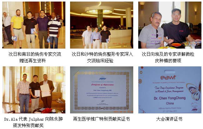 這次大會的最大亮點是MEBO和再生醫(yī)學(xué)。另外,這次大會和去年的會議相比也發(fā)生了明顯的變化:1、來自歐洲的Speaker較上次減少了(由去年的10名減少到5位),再生醫(yī)學(xué)的演講專家增加了(由去年的5名增加到了10名);2、再生醫(yī)學(xué)專題研討會的時間由去年的1小時增加到2小時(實際上是3h);3、原計劃只安排來自中國的陳永翀教授2場演講增加到了3場;4、這次再生醫(yī)學(xué)與傳統(tǒng)西醫(yī)學(xué)在燒傷、創(chuàng)傷和疤痕治療領(lǐng)域的同臺競技,再生醫(yī)學(xué)不管是在干細胞的研究與應(yīng)用,燒傷、創(chuàng)傷、潰瘍和疤痕的治療等都明顯勝出!再生醫(yī)學(xué)的學(xué)術(shù)地位、受認可程度和被歡迎的程度大為提升;5、歐洲的專家開始關(guān)注再生醫(yī)學(xué),并主動要求引進該技術(shù)和做臨床研究等。應(yīng)該說這是一次非常具有里程碑意義的國際學(xué)術(shù)大會。我們可以預(yù)測:在明年或不久的將來,下一屆的迪拜國際創(chuàng)傷與疤痕治療大會將完全變成再生醫(yī)學(xué)的學(xué)術(shù)大會!