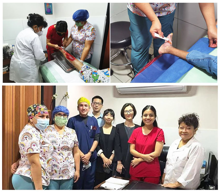 次日,美寶國(guó)際一行來(lái)到Dr. Isabel Atocha的診所進(jìn)行交流與學(xué)習(xí),并觀摩了其醫(yī)護(hù)人員極為專(zhuān)業(yè)的操作。Dr. Isabel在糖尿病足治療領(lǐng)域擁有多年應(yīng)用再生醫(yī)療技術(shù)的經(jīng)驗(yàn)。此行中,她詳細(xì)介紹了四位患者應(yīng)用再生醫(yī)療技術(shù)進(jìn)行治療的情況,其中三位患者均在他院被告知需要截肢,轉(zhuǎn)而求助Dr. Isabel后開(kāi)始應(yīng)用再生醫(yī)療技術(shù)。目前,患者的創(chuàng)面愈合狀況良好,避免了截肢手術(shù)的痛苦。