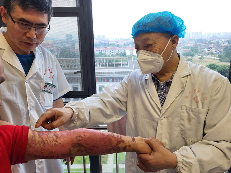 5月12日,中國(guó)中西醫(yī)結(jié)合學(xué)會(huì)燒傷專業(yè)委員會(huì)醫(yī)療部張強(qiáng)主任,受邀到訪武漢大學(xué)人民醫(yī)院經(jīng)開(kāi)醫(yī)院中醫(yī)瘡瘍科會(huì)診壓瘡、下肢靜脈曲張血管性潰瘍、低溫燙傷等慢創(chuàng)患者,張主任示范了再生醫(yī)療技術(shù)規(guī)范清創(chuàng)、換藥及處理創(chuàng)面的技巧與細(xì)節(jié),會(huì)后同科室張成主任探討了患者的基礎(chǔ)病的治療與營(yíng)養(yǎng)方案,針對(duì)不同的病情制定個(gè)性化治療方案。此次會(huì)診交流活動(dòng),促進(jìn)了中醫(yī)藥傳承創(chuàng)新,提升了中醫(yī)藥在治療瘡瘍科疾病中的作用!