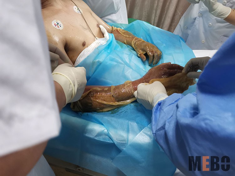 7月19日,重慶市巴南區(qū)中醫(yī)院創(chuàng)瘍科受邀來到重慶兩江新區(qū)第一人民醫(yī)院普外科,用再生醫(yī)療技術(shù)進行兩例爆炸傷患者頭面部以及雙上肢燒傷會診與交流。
