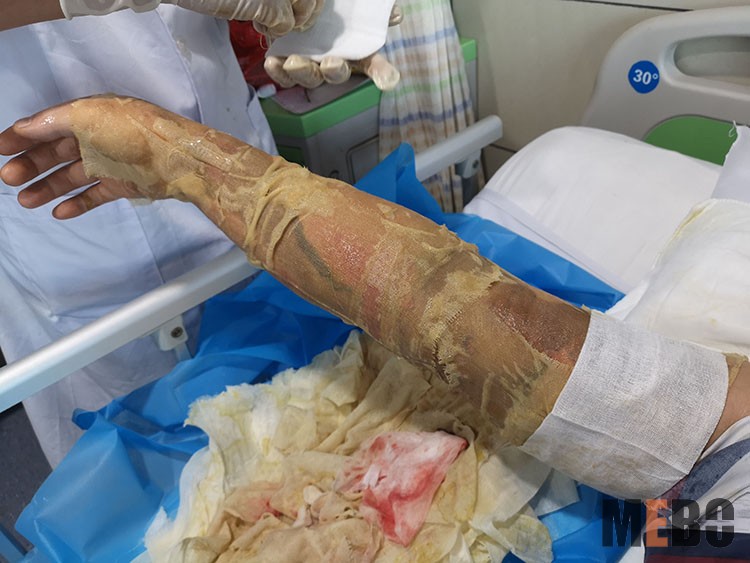 9月24日,應(yīng)湘陰縣人民醫(yī)院創(chuàng)口科室邀請(qǐng),北京榮祥再生醫(yī)學(xué)研究所副所長、《中國燒傷創(chuàng)瘍雜志》編委金黨軍來到醫(yī)院會(huì)診燒傷患者,規(guī)范再生醫(yī)療技術(shù)換藥方法。科室黎護(hù)士長陪同會(huì)診換藥。相比傳統(tǒng)療法,再生醫(yī)療技術(shù)在濕潤環(huán)境下進(jìn)行原位修復(fù)再生,痛苦小,愈后少疤痕甚至無疤痕,大大提高了燒傷患者的生活質(zhì)量。
