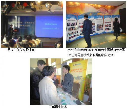 中國醫(yī)學(xué)科學(xué)院皮膚病研究所張懷亮教授、方方教授,江蘇省中醫(yī)院皮膚科閔仲生教授、魏躍鋼教授,江蘇省人民醫(yī)院皮膚科駱丹教授,東南大學(xué)中大醫(yī)院皮膚科王飛教授,南通大學(xué)附屬醫(yī)院皮膚科曹雙林教授,金壇市中醫(yī)醫(yī)院皮膚科戴揚主任等應(yīng)邀作專題講座。戴揚主任是江蘇省中醫(yī)學(xué)會皮膚科分會副主任委員兼皮膚創(chuàng)瘍學(xué)組組長,他以豐富的臨床經(jīng)驗,重點介紹了如何應(yīng)用再生技術(shù)治療皮膚潰瘍,并展示了大量功效圖例,再次得到了與會教授、專家及學(xué)者們的高度重視。