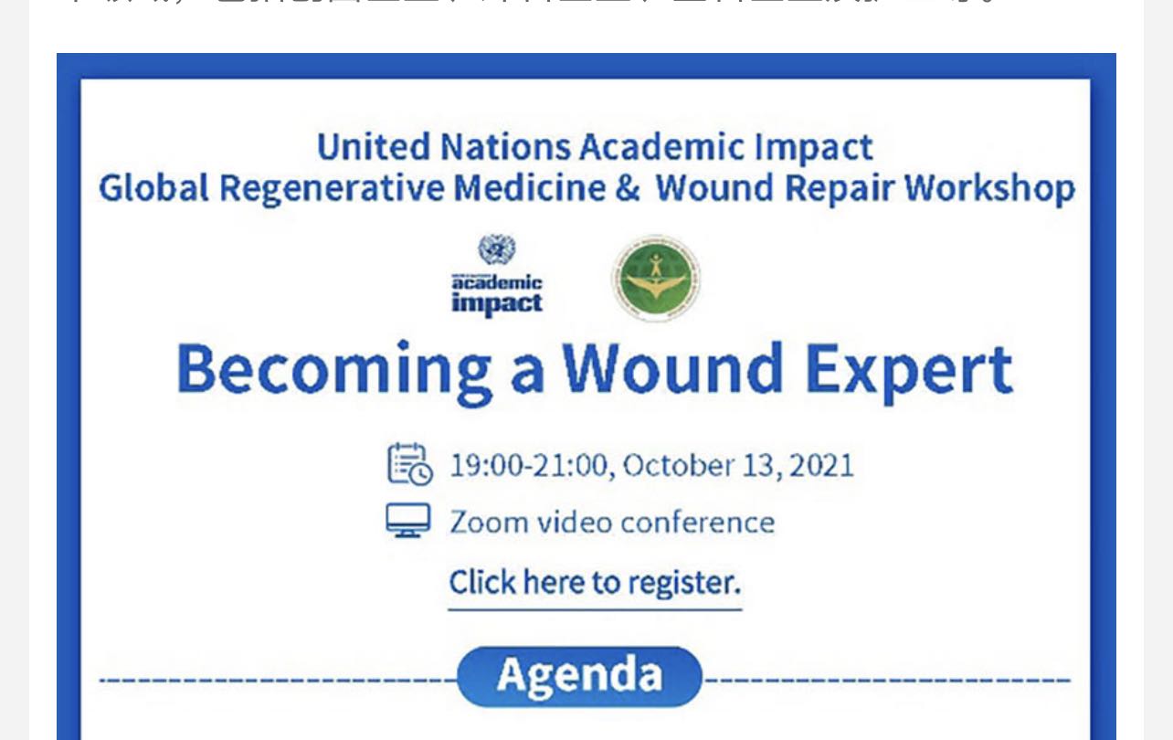 2021年10月14日,由國際再生醫(yī)學(xué)與創(chuàng)面修復(fù)學(xué)會(huì)主辦的聯(lián)合國學(xué)術(shù)影響力國際再生醫(yī)學(xué)線上培訓(xùn)活動(dòng)順利舉行。
