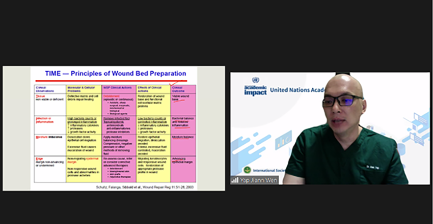 首位演講嘉賓是來自馬來西亞的Dr. Yap。Dr. Yap是馬來西亞創(chuàng)面醫(yī)師協(xié)會(huì)副主席、馬來西亞Queen Elizabeth醫(yī)院創(chuàng)面科主任。他的演講題目為《創(chuàng)面評估》,在演講中,他詳細(xì)地介紹了創(chuàng)面的主要評估指標(biāo)以及創(chuàng)面床的準(zhǔn)備等。