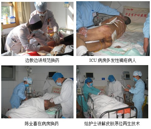 2011年11月7日上午,中國中西醫(yī)結(jié)合學(xué)會燒傷專業(yè)委員會委員,北京美寶燒傷創(chuàng)瘍研究所臨床部專家陳全喜受許昌市中心醫(yī)院ICU科主任陳建、內(nèi)分泌科主任刁建華的邀請會診兩位嚴重多發(fā)性壓瘡病人。