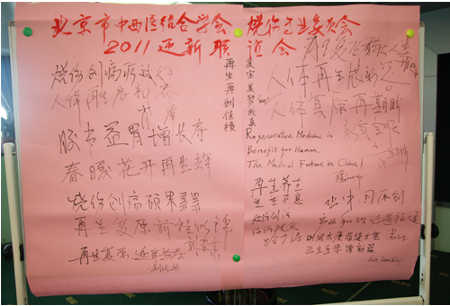 接下來委員們在留言板上留下了熱情洋溢的心里話。首先肖摩教授帶頭寫下了《燒傷創(chuàng)瘍療效好,人體再生展新容》。接下來委員們分別既表達了人體再生復原科學發(fā)展的美好祝愿——讓中國原創(chuàng)理論和產(chǎn)品造福人類;再生再創(chuàng)佳績,美寶美夢成真;再生養(yǎng)生生生不息,燒傷創(chuàng)傷傷傷愈合等。這些美好的祝福都表達了專家對人體再生復原科學應(yīng)用充滿憧憬和信心。座談會在熱烈的氣氛中結(jié)束,相信在新的一年里隨著人體再生復原科學的廣泛應(yīng)用,一定會造福更多的人群!