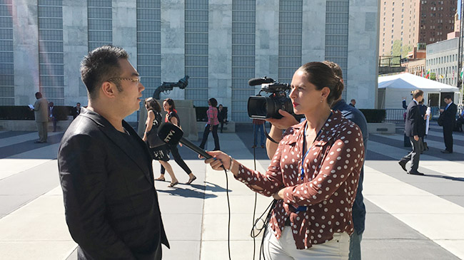 俄羅斯國(guó)際電視臺(tái)就聯(lián)大會(huì)議采訪徐鵬