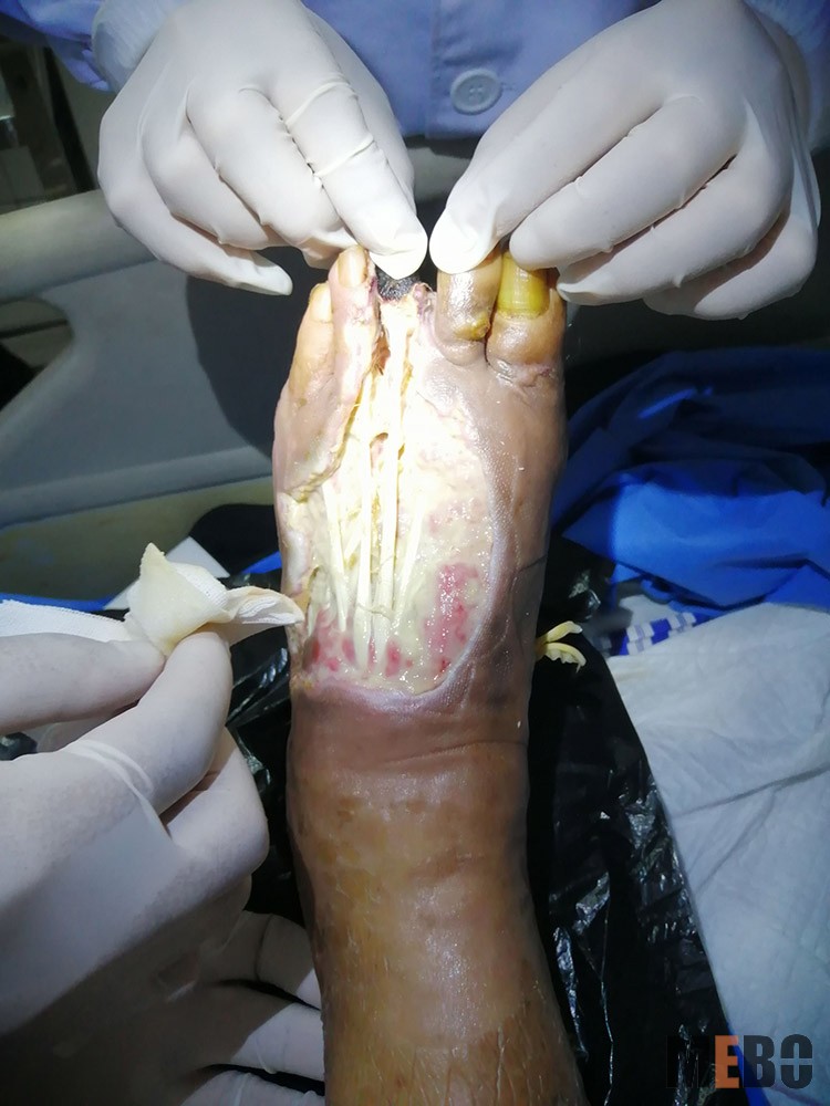 2021年5月13日, 應(yīng)河北省退役軍人總醫(yī)院馬主任邀請,省中西醫(yī)結(jié)合學(xué)會慢創(chuàng)分會委員孫道鈞主任前往該院老年病科,為1例右足燒傷、左足糖尿病潰瘍的患者清創(chuàng)換藥,此外還為4例慢性創(chuàng)面的治療給出了建議。會診結(jié)束后孫主任和科室醫(yī)務(wù)人員分享了自己在難愈合創(chuàng)面治療中的經(jīng)驗,得到了大家的高度認(rèn)可。