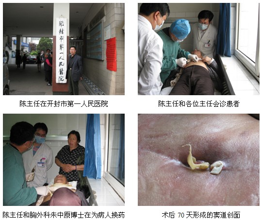 中國中西醫(yī)結(jié)合學(xué)會燒傷專業(yè)委員會委員、北京美寶燒傷創(chuàng)瘍研究所臨床部技術(shù)推廣專家陳全喜主任在2011年4月26日應(yīng)開封市第一人民醫(yī)院業(yè)務(wù)副院長、大外科主任李華強(qiáng)主任醫(yī)師的邀請,會診心胸外科病區(qū)心臟冠狀動脈搭橋術(shù)后刀口不愈合的1例病人。陳全喜主任會診后,給患者應(yīng)用皮膚原位再生醫(yī)療技術(shù)治療,獲得了較為滿意的療效。