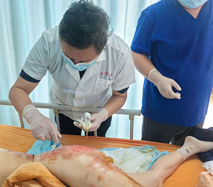 2025年4月24日,《中國(guó)燒傷創(chuàng)瘍雜志》編委、燒傷創(chuàng)瘍?cè)偕t(yī)療技術(shù)臨床專(zhuān)家張強(qiáng),應(yīng)邀前往寧國(guó)市人民醫(yī)院燒傷科為多例燒傷、褥瘡病人進(jìn)行會(huì)診,張主任運(yùn)用再生醫(yī)療技術(shù)為患者進(jìn)行清創(chuàng),講解規(guī)范換藥流程和注意事項(xiàng)。
