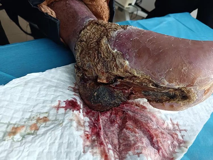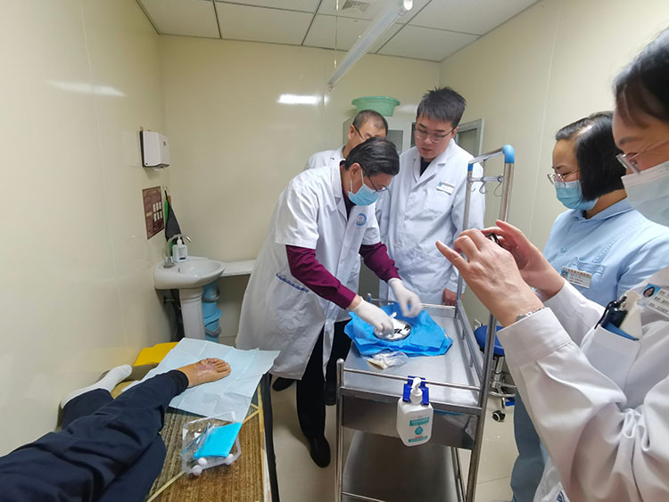 2025年4月25日,《中國(guó)燒傷創(chuàng)瘍雜志》常務(wù)編委、燒傷創(chuàng)瘍?cè)偕t(yī)療技術(shù)臨床專(zhuān)家趙瑞慶,到山西上黨區(qū)中醫(yī)院隨訪患者?;颊咭蚪煌ㄊ鹿蕦⒂蚁轮钻P(guān)節(jié)軟組織嚴(yán)重?fù)p傷,曾在長(zhǎng)治市某醫(yī)院治療未果,故轉(zhuǎn)回上黨區(qū)中醫(yī)院醫(yī)治,后經(jīng)趙瑞慶教授會(huì)診,制定了具體的再生、保足治療方案,經(jīng)過(guò)皮膚創(chuàng)面肉芽培養(yǎng),抗骨髓炎治療,分區(qū)域皮膚移植修復(fù),最終在4月2日康復(fù)出院。4月25日隨訪時(shí)患者,家屬對(duì)治療結(jié)果非常滿(mǎn)意,特別感謝徐榮祥教授教授發(fā)明的再生醫(yī)療技術(shù)保住了他的腳。