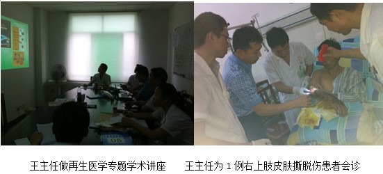 2012年9月26日下午三點(diǎn),應(yīng)該院外科文振偉主任的邀請(qǐng),中國中西醫(yī)結(jié)合學(xué)會(huì)燒傷專業(yè)委員會(huì)常委兼秘書、《中國燒傷創(chuàng)瘍雜志》副總編輯、北京美寶燒傷創(chuàng)瘍研究所副所長、第二臨床研究部主任王洪生研究員來到該院到該科作學(xué)術(shù)和技術(shù)上的交流和指導(dǎo),參會(huì)人員為該科室全體醫(yī)護(hù)人員共10余人。會(huì)議在該院外科室舉行, 王主任通過大量典型的臨床病例圖片及錄像資料詳細(xì)的介紹了再生醫(yī)療技術(shù)對(duì)深度燒傷及難愈性創(chuàng)面作用機(jī)理、再生復(fù)原療法對(duì)各種不同深度燒傷及各種難愈性創(chuàng)面治療方法和規(guī)范操作時(shí)的注意事項(xiàng)等,在授課過程之中大家認(rèn)真聽講,并在授課后大家對(duì)王主任講課內(nèi)容進(jìn)行了深入的探討,王主任根據(jù)大家提出的問題有針對(duì)性的進(jìn)行了講解,會(huì)后王主任對(duì)該科一例右上肢撕脫傷病人進(jìn)行會(huì)診,王主任還親自為病人換藥,進(jìn)行了現(xiàn)場的生動(dòng)有效的臨床指導(dǎo)示范。
