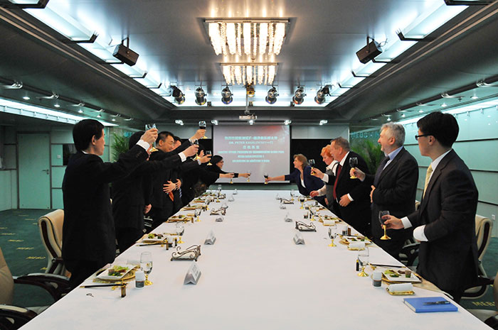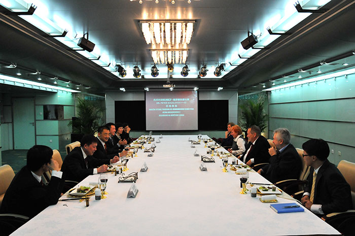 美寶國際集團(tuán)董事局主席徐榮祥教授對(duì)Dr. Kasalovsky一行的來訪進(jìn)行了盛情的接待,集團(tuán)總裁楊智斌、副總裁張倩、陳寶琪、孫霞在場(chǎng)陪同。