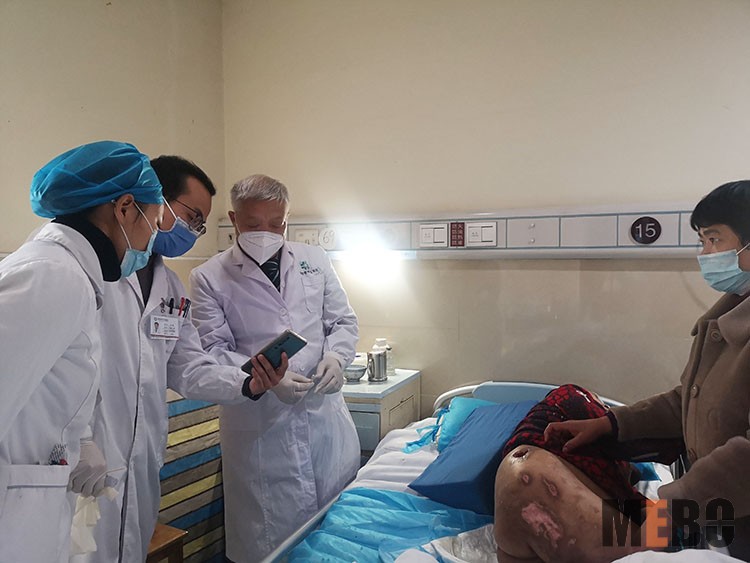 11月25日,因疫情防控,享受國(guó)務(wù)院特殊津貼專家、中國(guó)中西醫(yī)結(jié)合燒傷專業(yè)委員會(huì)顧問、中國(guó)研究型醫(yī)院學(xué)會(huì)創(chuàng)面防治與損傷組織修復(fù)專業(yè)委員會(huì)委員、中國(guó)中西醫(yī)結(jié)合學(xué)會(huì)再生醫(yī)療技術(shù)委員會(huì)創(chuàng)瘍學(xué)組首席專家、《中國(guó)燒傷創(chuàng)瘍雜志》常務(wù)編委、成都市郫都區(qū)人民醫(yī)院燒傷創(chuàng)瘍科學(xué)術(shù)帶頭人付子俊教授應(yīng)黔南州甕安縣中醫(yī)院邀請(qǐng),對(duì)一名頭面部,手部燒傷病人進(jìn)行遠(yuǎn)程視頻會(huì)診,提出治療方案并指導(dǎo)清創(chuàng)換藥。