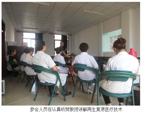遼寧省朝陽(yáng)市糖尿病醫(yī)院是遼西地區(qū)頗具規(guī)模的糖尿病專(zhuān)科醫(yī)院,每年接診患者萬(wàn)余人次。在該院邢光明院長(zhǎng)的邀請(qǐng)下,中國(guó)中西醫(yī)結(jié)合學(xué)會(huì)燒傷專(zhuān)業(yè)委員會(huì)樊兆宗教授來(lái)到朝陽(yáng),于2012年8月24日下午,在該院的會(huì)議室里舉行了人體再生復(fù)原科學(xué)暨皮膚創(chuàng)面修復(fù)的多科室應(yīng)用講座,會(huì)議由該院趙玉彩副院長(zhǎng)主持,除值班外的全體醫(yī)護(hù)人員參加了這次講座。樊教授系統(tǒng)闡述了皮膚原位再生修復(fù)的理論,并針對(duì)糖尿病臨床治療中常見(jiàn)的皮膚潰瘍和褥瘡的護(hù)理要點(diǎn)和再生醫(yī)療技術(shù)的操作規(guī)范進(jìn)行了重點(diǎn)的講解。報(bào)告內(nèi)容深入淺出,密切結(jié)合臨床,讓與會(huì)人員深感受益匪淺,紛紛表示這種簡(jiǎn)單易行又療效不凡的方法,將會(huì)很好地解決那些久治不愈的皮膚創(chuàng)面的難題,為此類(lèi)患者的治療帶來(lái)福音。