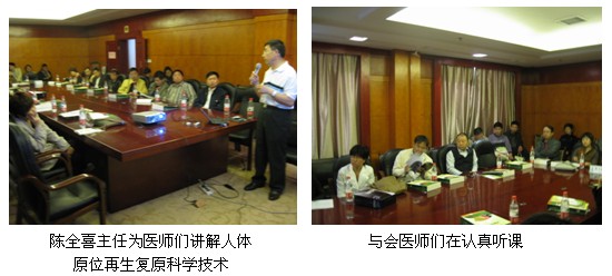 這次培訓(xùn)使與會(huì)的醫(yī)師深刻體會(huì)到了醫(yī)學(xué)科學(xué)技術(shù)的發(fā)展速度之快,不由的驚嘆人體再生復(fù)原科學(xué)技術(shù)使人類夢想成真???h人民醫(yī)院普外科高祥主任說:“今天我真正的認(rèn)識(shí)了人體再生復(fù)原科學(xué)技術(shù),它是利用再生物質(zhì)激活人體潛能再生細(xì)胞,使皮膚原位再生,干燥療法只是讓創(chuàng)面愈合,會(huì)留下瘢痕,只有再生生物敷料——美寶創(chuàng)瘍貼才是我們外科醫(yī)師的選擇,也是未來發(fā)展的方向?!?BR>      與會(huì)醫(yī)師激烈的討論了40分鐘,醫(yī)師們提出了23條問題,陳全喜主任都一一做了詳細(xì)的回答。最后衛(wèi)生局科教科李光耀科長表示,如果需要再辦科普培訓(xùn)班,還要邀請陳主任來為大家講課。
