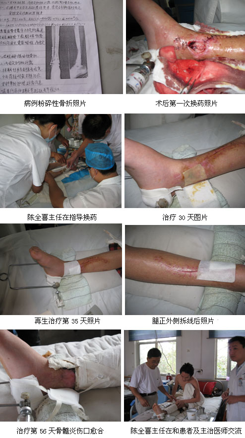 中國中西醫(yī)結合學會燒傷專業(yè)委員會委員陳全喜副主任醫(yī)師在河南省許昌地區(qū)小鐵路骨科醫(yī)院與該院蔣彩云院長,李杰副院長,尚輝醫(yī)師共同攜手成果治愈了1例慢性骨髓炎患者?,F(xiàn)報告如下:
