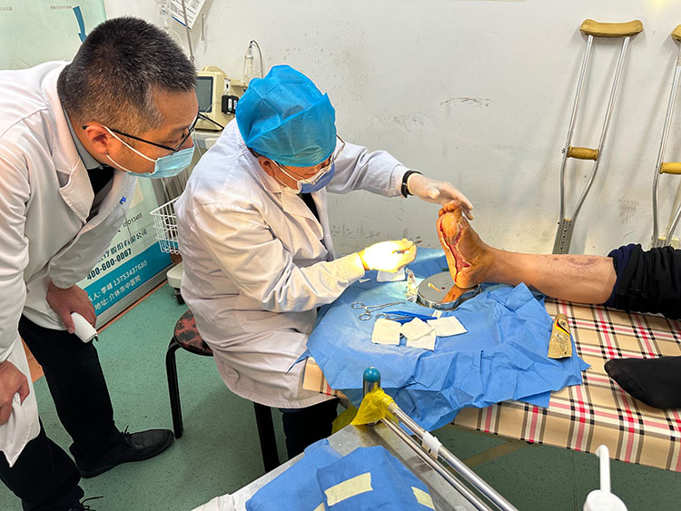 11月20日,應介休市中醫(yī)院急會診邀請,《中國燒傷創(chuàng)瘍雜志》常務編委、燒傷創(chuàng)瘍再生醫(yī)療技術臨床專家趙瑞慶,在該院會診了五例慢創(chuàng)患者,事后在醫(yī)辦室與當?shù)蒯t(yī)務人員討論分析了每例病人的病情,著重講解了糖足潰瘍使用骨膜牽張術的適應癥,觀察要點。大家表示對專家的會診、實操流程、講述重點等受益匪淺,歡迎常來指導臨床工作。