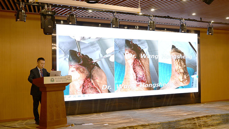 會上,趙瑞慶教授深入淺出地講解了關于“再生生命科學”的五大機理,詳細闡述了其如何在攻克十種慢性創(chuàng)瘍病中發(fā)揮的關鍵作用。同時進行了諸多臨床病例分享:如糖尿病潰瘍、壓力性潰瘍、血管性潰瘍、皮膚感染創(chuàng)面、皮膚癌潰瘍、放射性潰瘍、痛風性潰瘍、結核性潰瘍、急性外傷、醫(yī)源性潰瘍等,并詳細講解了再生醫(yī)療技術在臨床創(chuàng)面修復中起到的神奇作用。