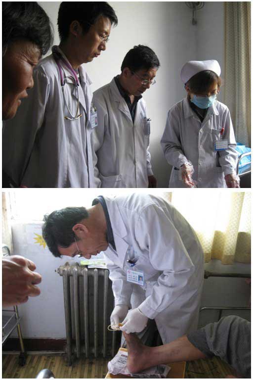 2012間4月23日,中國中西醫(yī)學(xué)會燒傷專業(yè)委員會委員、北京美寶燒傷創(chuàng)瘍研究所臨床部主任陳全喜和區(qū)域經(jīng)理葛小雪應(yīng)邀來到漯河市中醫(yī)院。