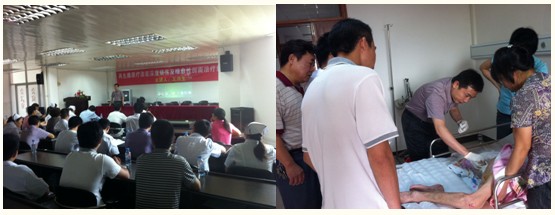 2012年6月4日下午,應廣東省東源縣中醫(yī)院葉勇主任之邀,中國中西醫(yī)結合學會燒傷專業(yè)委員會常委兼秘書、《中國燒傷創(chuàng)瘍雜志》副總編輯、北京美寶燒傷創(chuàng)瘍研究所副所長、第二臨床研究部主任王洪生研究員到醫(yī)院做“再生復原療法在深度燒傷及難愈性創(chuàng)面治療新進展”專題學術講座。廣東省東源縣中醫(yī)院全院的醫(yī)護人員均參加了此次培訓,張干華副院長主持了會議,在學術講座中,王主任首先向與會的專家介紹了著名生命科學家、醫(yī)學家、人體再生復原科學的創(chuàng)立者、再生復原療法的發(fā)明人徐榮祥教授近年來在再生醫(yī)學領域所取得的重大實驗及臨床研究成果,而后王主任結合了大量的臨床病例圖片及錄像資料,主要針對深度燒傷及各類難愈性創(chuàng)傷、潰瘍創(chuàng)面的規(guī)范化處理方法與技巧、注意事項等進行了細致地講解,在座的各位醫(yī)護均被這神奇的療法折服。會后,醫(yī)護人員向王主任詢問了臨床上所遇到的問題,王主任一一作了詳細解答。該院張干華副院長作總結發(fā)言時,高度贊揚了再生復原療法,稱之為一種“為患者帶來福音”的療法。隨后,應外科葉勇主任的邀請,王主任親自對一名褥瘡病人患者進行了會診,并提出治療建議。