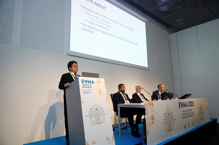 除演講外,在海報展示中,來自蒙古Venera VIP Clinic醫(yī)院的Solongo Oyunbileg,馬來西亞Raja Perempuan Zainab II醫(yī)院的Mohd Zurairie,以及馬來西亞皇后伊麗莎白醫(yī)院的Jiann Wen Yap,分別提交了題為“利用濕潤燒傷膏治療傷口:1例病例報告”、“聯(lián)合應用濕潤燒傷膏與硅膠非粘性泡沫敷料治療小兒下肢遠端創(chuàng)傷” 、“使用濕潤燒傷膏治療壓力性損傷”的電子海報, 深受現場參會者的好評。