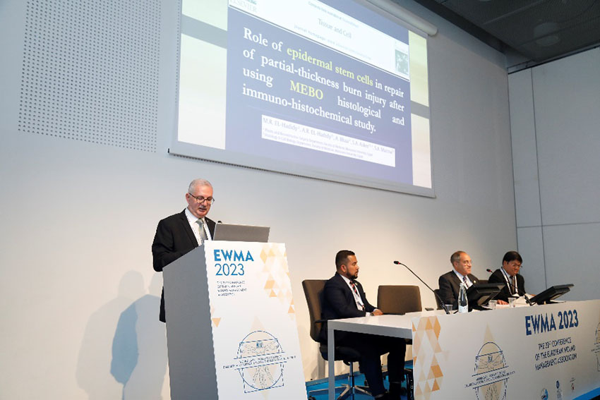 5月4日下午,在大會主題演講中,埃及亞歷山大大學外科教授Mahmoud Sakr以“再生醫(yī)療技術在開放性傷口治療中的療效評估”為題,分享了應用再生醫(yī)學技術治療各類開放性創(chuàng)面的寶貴臨床經驗。