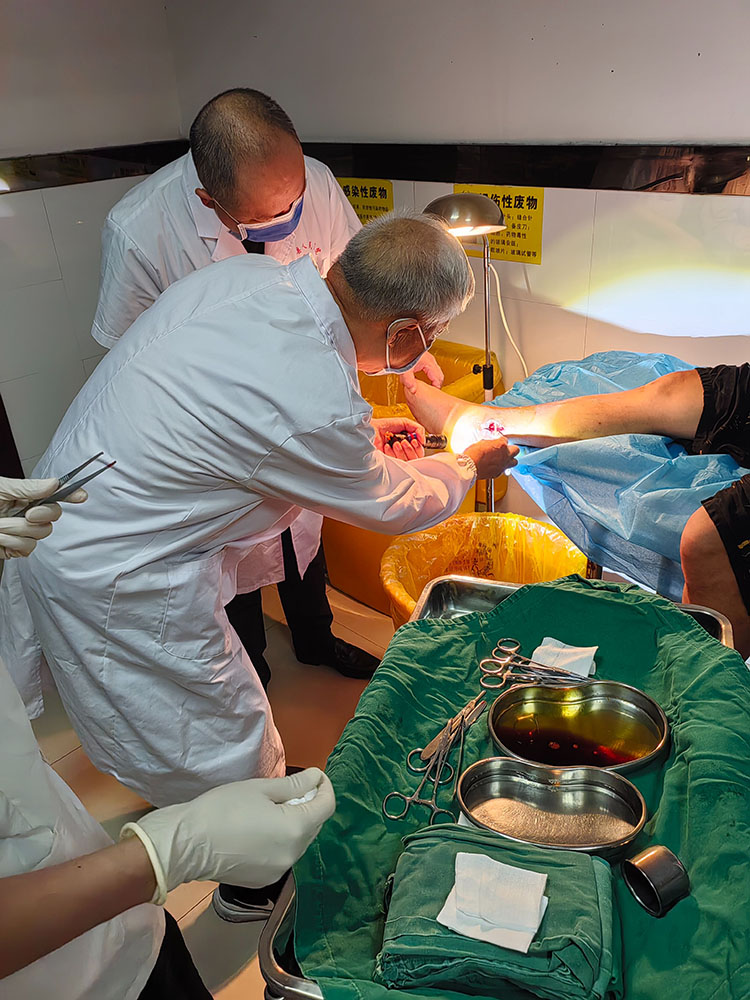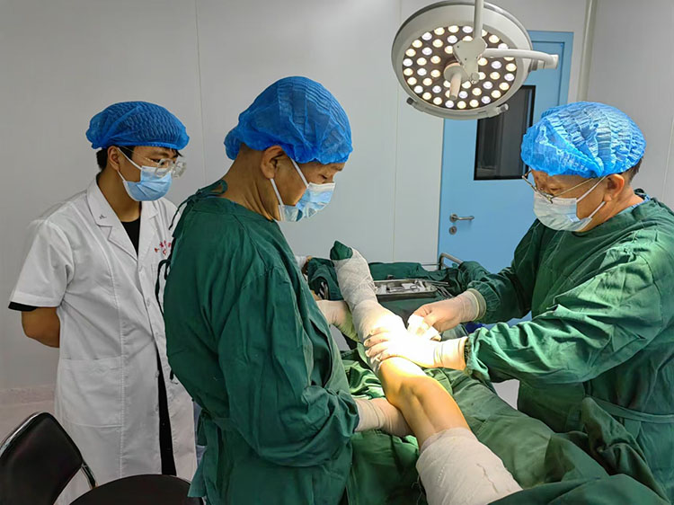 2024年8月12日,應(yīng)高平民生燒傷??漆t(yī)院邀請,《中國燒傷創(chuàng)瘍雜志》常務(wù)編委、燒傷創(chuàng)瘍再生醫(yī)療技術(shù)臨床專家趙瑞慶,在該院會診了二例患者,一例因摩托車排氣管燙傷左下肢三度燒傷,另外一例為左下肢踝關(guān)節(jié)內(nèi)側(cè)慢性創(chuàng)面13年未愈,針對關(guān)節(jié)功能部位的特殊性采取措施,術(shù)中順利,出血不多,病人安返病房。趙教授就有關(guān)術(shù)后管理注意事項做了詳細布置。得到醫(yī)護人員及家屬的一致好評。