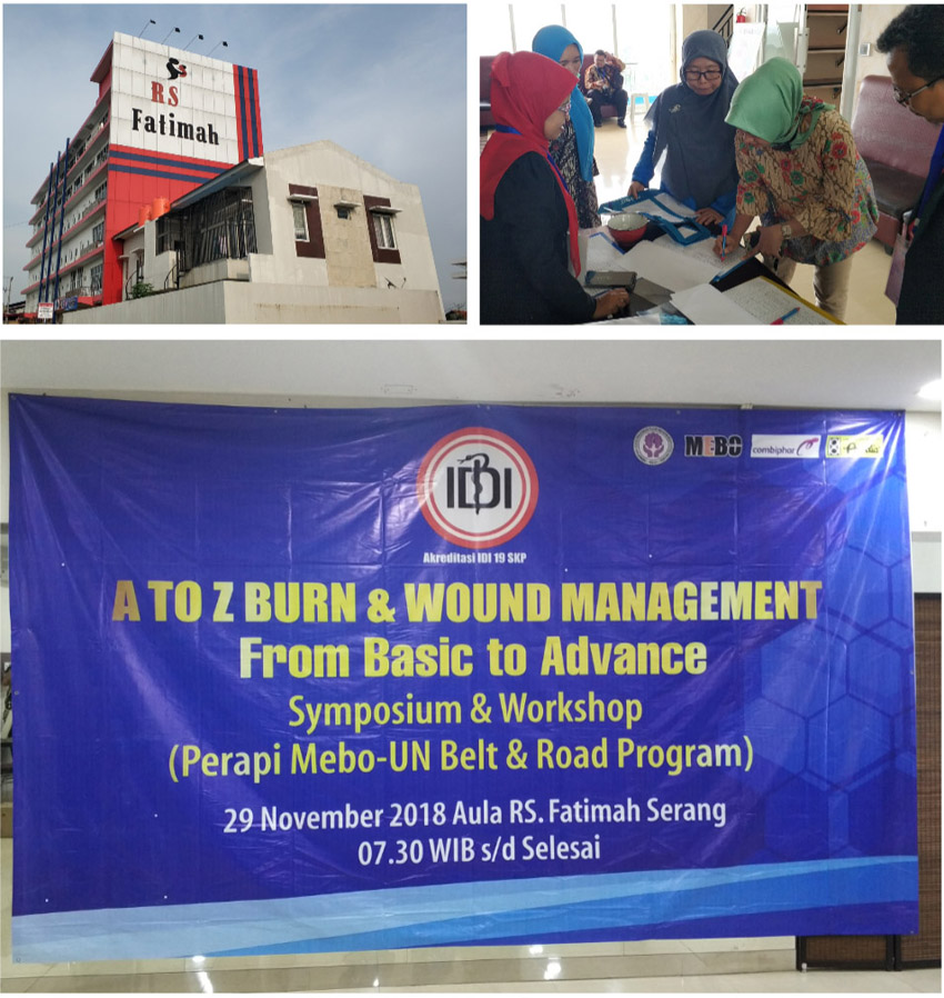 早上7點30,第三屆“一帶一路”倡議全球再生醫(yī)學(xué)大型培訓(xùn)班在西朗市第二級別醫(yī)院RS Fatimah如期舉行。首先,美寶國際印尼戰(zhàn)略合作伙伴Combiphar集團的支持人代表公司向美寶國際籌辦此次活動及到場的各位專家表示歡迎和感謝。隨后根據(jù)議程安排,由美寶國際印尼市場負責(zé)人向到場的講師和與會專家進行了詳細的培訓(xùn)班及活動主旨介紹,簡要的介紹了再生醫(yī)學(xué)在世界范圍內(nèi)的應(yīng)用情況。隨后,印尼整形協(xié)會副會長Dr. Irena Sakura Rini, 美容整形專家Dr M adib, 耳鼻喉科專家Dr Hendrarto, 本院副院長及創(chuàng)瘍專家Dr Budi suhendar(圖一左至右)與本醫(yī)院的燒傷創(chuàng)瘍科全體人員合影。