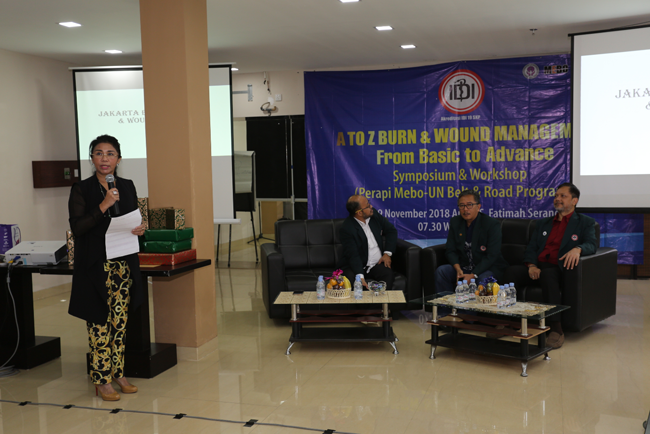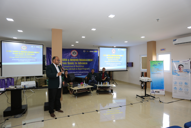 會議中一共分為五個環(huán)節(jié)。首先,承辦本次活動的RS Fatimah醫(yī)院副院長Dr Budi suhendar對到廠的參會人員表示歡迎。隨后,來自雅加達的Dr. Puri Ambar Lestari/Dr. Afriyanti Sandhi/Dr. Aditya Herwandar講解燒傷創(chuàng)瘍?nèi)梭w恢復(fù)的基本理論;第二,由Dr. Donna Savitry/Dr. Nur Anindhawati講解創(chuàng)瘍的再生醫(yī)學(xué)基本護理;第三,由Dr. Donna Savitry/Dr. Nur Anindhawati/Dr. Aditya Herwandar講解燒傷的再生醫(yī)學(xué)基本護理;第四,由Dr. Afriyanti Sandhi/Dr. Puri Ambar Lestari/Donna Savitry作相關(guān)燒傷和其他適應(yīng)癥病例的分享;第五,由Dr. Afriyanti Sandhi/Dr. Puri Ambar Lestari/Dr. Aditya Herwandar/Dr. Aditya Herwandar四位專家?guī)ьI(lǐng)分組討論并作答疑。
