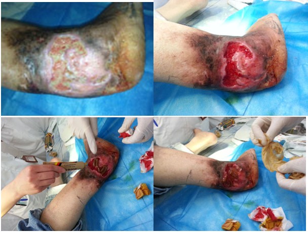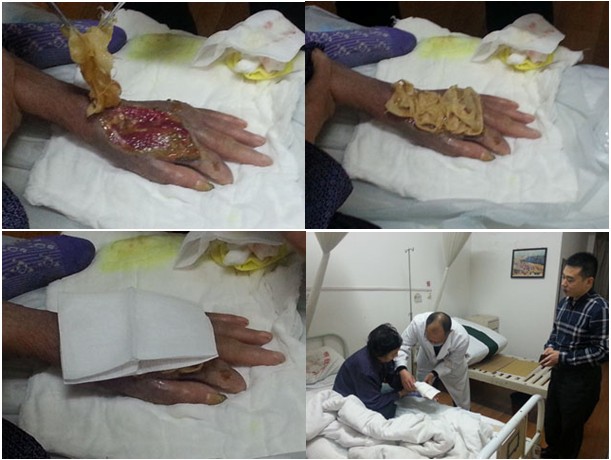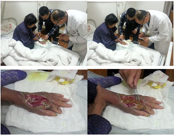 2013年3月26下午至27日上午,受北海市中醫(yī)院的邀請(qǐng),王洪生主任到該院普外、泌尿、燒傷創(chuàng)瘍外科進(jìn)行“再生療法在褥瘡、下肢靜脈曲張、糖尿病足等難愈性創(chuàng)面治療新進(jìn)展”專題臨床學(xué)術(shù)講座。并為該科收治的1例糖尿病足,4例老年4度潰瘍性褥瘡患者,1例70歲老年男性慢性潰瘍患者右下肢大隱靜脈曲張并骨髓炎致6年余不愈、廣西幾家最大醫(yī)院評(píng)定要截肢的患者進(jìn)行了會(huì)診和示范清創(chuàng)手術(shù)。26日下午4點(diǎn),在該醫(yī)院普外、泌尿、燒傷創(chuàng)瘍外科史國恩副主任醫(yī)師,蔡漢章副主任醫(yī)師及主管醫(yī)生等醫(yī)護(hù)人員的帶領(lǐng)下,對(duì)在該醫(yī)院就診和住院的上述患者進(jìn)行了會(huì)診和臨床指導(dǎo),結(jié)合會(huì)診對(duì)該科室的醫(yī)護(hù)人員進(jìn)行了再生復(fù)原療法在褥瘡,糖尿病足及脈管炎等難愈性創(chuàng)面臨床規(guī)范化應(yīng)用技術(shù)培訓(xùn),并強(qiáng)調(diào)了對(duì)創(chuàng)面徹底清創(chuàng)的重要性、結(jié)合再生療法治療才能解決創(chuàng)面愈合的難題。27號(hào)上午,王主任在1例因右下肢大隱靜脈曲張并骨髓炎6年余不愈的慢性潰瘍患者家屬的強(qiáng)烈邀請(qǐng)下,還親自帶領(lǐng)該科副主任等醫(yī)護(hù)人員給這患者做了示范清創(chuàng)手術(shù)。