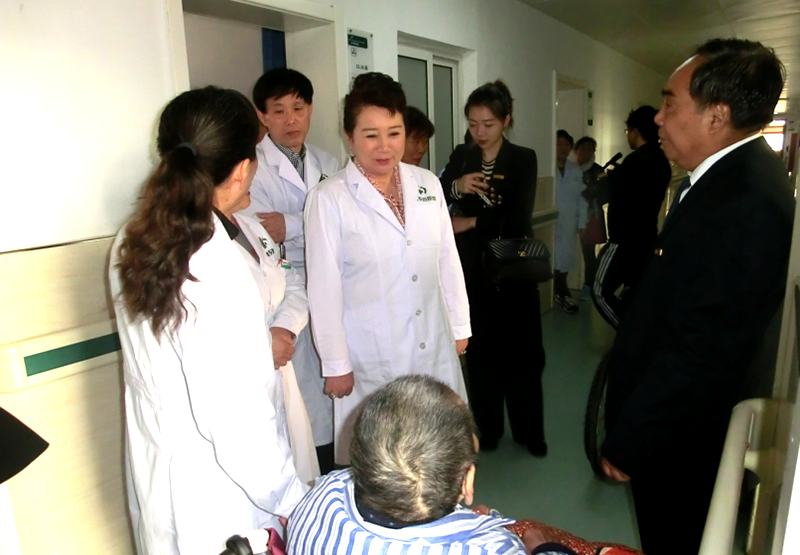 參觀完門診區(qū),來到二樓綜合內(nèi)科病區(qū),朱登玲副院長介紹了病區(qū)的發(fā)展情況,重點(diǎn)介紹了新開展的醫(yī)養(yǎng)結(jié)合項(xiàng)目,該項(xiàng)目是在治療各類內(nèi)科疾病的基礎(chǔ)上,新增以慢性重癥患者為主而開展的,通過一年多的探索與實(shí)踐,已經(jīng)成為內(nèi)科病區(qū)的一大特色,并成為當(dāng)?shù)貙W(xué)習(xí)典范,得到了政府主管部門的肯定,多次接待政府組織的其他醫(yī)療機(jī)構(gòu)的參訪和經(jīng)驗(yàn)交流,并取得了一定的社會(huì)信譽(yù)。李俐走進(jìn)病房與老人進(jìn)行親切的交談,了解醫(yī)養(yǎng)結(jié)合服務(wù)情況,當(dāng)老人們紛紛表示非常滿意的時(shí)候,李俐感到非常欣慰。