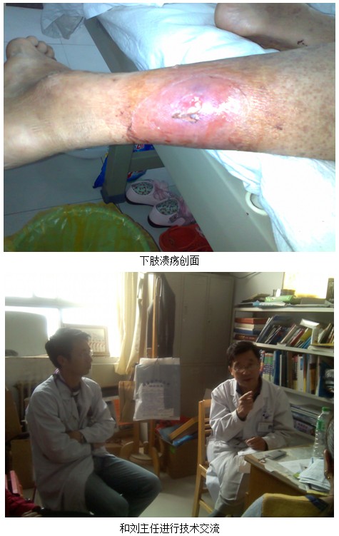 河南孟津縣南與古都洛陽毗鄰,北臨滔滔黃河,與濟(jì)源市一橋相連。孟津地處山區(qū),位于三角地帶,交通不便,各種信息相對較閉塞。2012年5月3號,中國中西醫(yī)結(jié)合學(xué)會燒傷專業(yè)委員會委員、北京美寶燒傷創(chuàng)瘍研究所臨床部專家陳全喜主任與區(qū)域經(jīng)理李帥一同來到孟津縣中醫(yī)院,在縣醫(yī)院受到周圍血管病科主任劉寶來的熱情接待。通過交流,主任劉寶來了解了國際美寶集團(tuán)、了解了皮膚原位再生醫(yī)療技術(shù)發(fā)明人徐榮祥教授。午飯后,主任劉寶來邀請陳全喜主任會診一位長期住院患者(下肢動脈狹窄性脈管炎誘發(fā)的潰瘍創(chuàng)面,久經(jīng)治療,20年不愈)。會診后,陳主任建議用皮膚原位再生醫(yī)療技術(shù)治療。