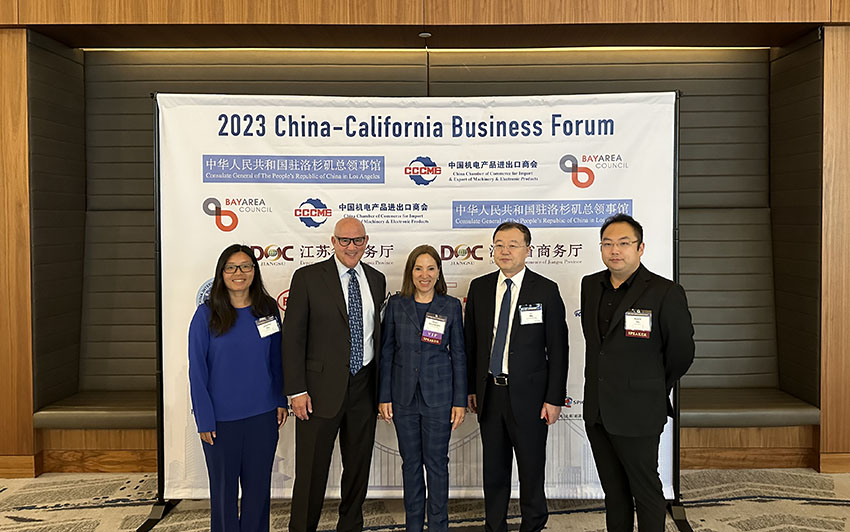 2023年中國—加州經(jīng)貿(mào)論壇(以下簡稱“論壇”)于5月22日在洛杉磯舉行。此次論壇是 Covid-19 大流行之后的第一個論壇,來自七個省份的 150 多位頂級商界領(lǐng)袖和貿(mào)易官員組成的中國代表團參加了此次論壇。江蘇省是今年的主賓省。中華人民共和國駐洛杉磯總領(lǐng)事館總領(lǐng)事(大使級)郭少春、灣區(qū)委員會主席兼首席執(zhí)行官Jim Wunderman、中國機電產(chǎn)品進出口商會副會長劉春、GO-Biz 國際事務(wù)與貿(mào)易副總監(jiān)Emily Desai、洛杉磯地區(qū)出口委員會 (LARExC) 主席Brian Peck、江蘇省副省長方偉、加州副州長Eleni Kounalakis等出席了此次論壇。美寶集團董事局主席、灣區(qū)委員會執(zhí)行董事兼國際委員會共同主席徐鵬受邀出席論壇并發(fā)表觀點論見。