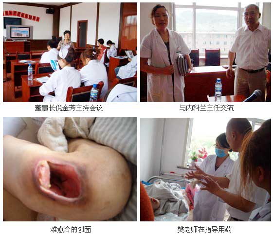 2011年7月10日下午,中國(guó)中西醫(yī)結(jié)合學(xué)會(huì)燒傷專業(yè)委員會(huì)的樊兆宗教授在喬巍的陪同下,來(lái)到了該醫(yī)院。對(duì)該院的外科、內(nèi)科急診科、老年病房的20多名醫(yī)護(hù)人員進(jìn)行了再生醫(yī)療技術(shù)的普及推廣工作,在培訓(xùn)中樊教授有針對(duì)性的對(duì)該院的特色科室老年病房中接收的褥瘡、糖尿病潰瘍患者的創(chuàng)面處理進(jìn)行了重點(diǎn)講解,指出了一定要規(guī)范用藥,保護(hù)好創(chuàng)面殘留的潛能再生細(xì)胞的重要性。學(xué)員們都能認(rèn)真的聽(tīng)課并記錄筆記。