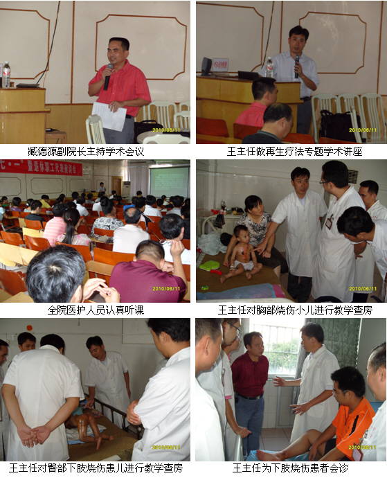 2010年7月17日上午8時,王主任又應(yīng)該院副院長兼外三科(胸外燒傷科)臧德源副主任醫(yī)師的邀請,來到該院外三科與該科的專家和醫(yī)生就有關(guān)全身燒傷及創(chuàng)面感染的診斷、防治方法、營養(yǎng)支持、臟器功能保護、燒傷病房的管理、床單位的護理等問題進行了廣泛而深入的溝通與交流。隨后,王主任又在臧德源副院長及外三科全體醫(yī)生的陪同下,深入燒傷病房,對在該科治療的10余例燒傷患者進行了逐一教學(xué)查房和臨床指導(dǎo),臧德源副院長及外三科的專家、醫(yī)生紛紛表示,王主任這次蒞臨該院進行臨床學(xué)術(shù)交流,不僅使該院治療燒傷的技術(shù)更加規(guī)范,而且又為該院引進了治療難愈性創(chuàng)傷、潰瘍創(chuàng)面新技術(shù),相信這項技術(shù)必將使平南縣廣大的患者受益,并為該院帶來良好的社會效益和經(jīng)濟效益。