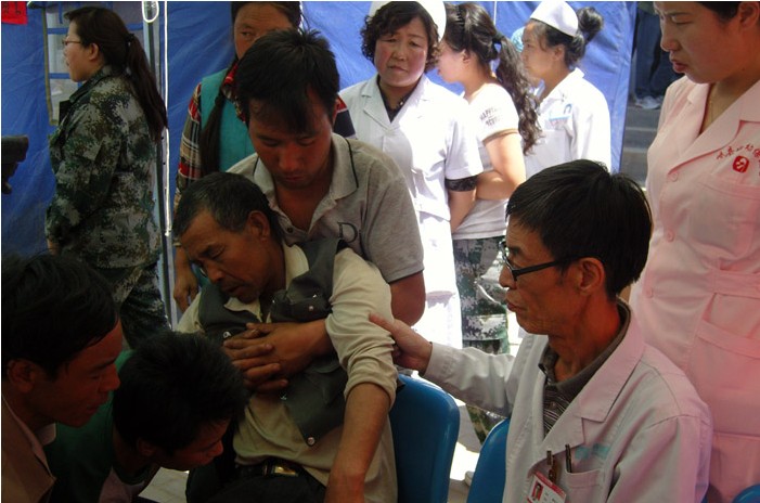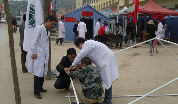 柳佰富主任率15人的抗震救災(zāi)醫(yī)療隊(duì)于當(dāng)日22點(diǎn)從蘭州緊急出發(fā),經(jīng)過(guò)六個(gè)多小時(shí)連夜兼程,于23日凌晨四點(diǎn)多到達(dá)災(zāi)區(qū)。顧不上一路的奔波與勞累,顧不上一口飯一口水,總想著以最快的速度,將最便捷的方法、最有效的技術(shù)帶給那些等待救治的傷者。