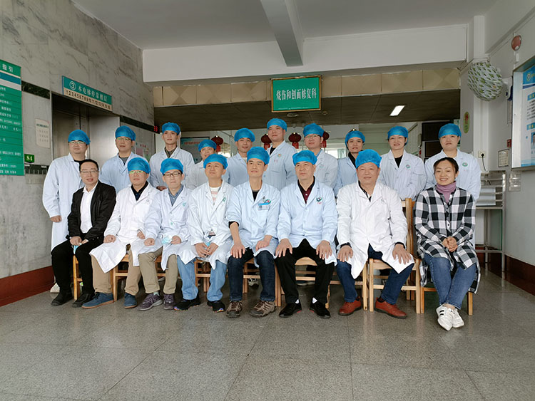 2021年4月10日,來(lái)自梅州市人民醫(yī)院、豐順縣人民醫(yī)院、汕頭澄海人民醫(yī)院、普寧市第二人民醫(yī)院、興寧市人民醫(yī)院、惠來(lái)縣人民醫(yī)院,惠來(lái)縣第二人民醫(yī)院、廣州市開發(fā)區(qū)醫(yī)院、陽(yáng)西總醫(yī)院中醫(yī)醫(yī)院等相關(guān)專業(yè)的科主任、骨干醫(yī)師齊聚韶關(guān)市第一人民醫(yī)院燒傷和創(chuàng)面修復(fù)科參觀交流,通過臨床觀摩和病例分享,有利于推動(dòng)再生醫(yī)療技術(shù)在糖尿病足潰瘍、壓瘡等慢性難愈性創(chuàng)面的臨床規(guī)范化應(yīng)用,造福更多患者。