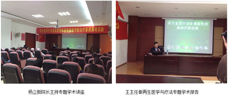 2012年11月16日下午應(yīng)該院楊立新院長的邀請, 中國中西醫(yī)結(jié)合學會燒傷專業(yè)委員會常委兼秘書、《中國燒傷創(chuàng)瘍雜志》副總編輯、北京美寶燒傷創(chuàng)瘍研究所副所長、臨床研究部主任王洪生研究員來到該院,對該院醫(yī)護人員進行再生復(fù)原療法在深度燒傷及難愈性創(chuàng)面和各種潰瘍治療新進展的規(guī)范性培訓(xùn)及學術(shù)交流。王主任結(jié)合大量真實的臨床病例圖片,就再生復(fù)原療法在難愈性創(chuàng)瘍創(chuàng)面治療上的一種新方法,對不同深度的燒傷創(chuàng)面及各類難愈性創(chuàng)傷、潰瘍創(chuàng)面的規(guī)范化處理方法與技巧、注意事項等進行了細致的講解,強調(diào)創(chuàng)面處理要大膽清創(chuàng)、減壓、去除壞死組織,并保持創(chuàng)面生理的濕潤環(huán)境,實現(xiàn)創(chuàng)面的再生復(fù)原。會后外科的醫(yī)生就高壓電燒傷顱骨開窗等系列問題請教了王主任,并一一作答。