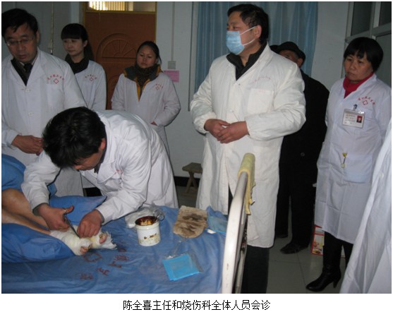 2012年11月26日,中國(guó)中西醫(yī)結(jié)合學(xué)會(huì)、燒傷專業(yè)委員會(huì)委員、北京美寶燒傷創(chuàng)瘍研究所臨床部專家陳全喜主任受滑縣第三人民醫(yī)院燒傷科賈主任的邀請(qǐng)會(huì)診一位88歲的燒傷病人。