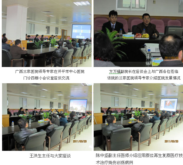 通過對開平市中心醫(yī)院、廣州市中西醫(yī)結(jié)合醫(yī)院兩家醫(yī)院的參觀交流后,桂平市中醫(yī)醫(yī)院的韋國雨副院長、大骨科主任黎小琳、大外科主任黎海都表示要立即把燒傷創(chuàng)瘍科組建起來,把燒傷再生醫(yī)學與療法相關(guān)技術(shù)應用到各類燒傷及難愈性創(chuàng)面的治療中,以造福180萬桂平人民。