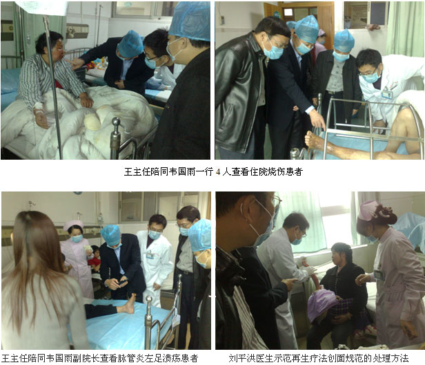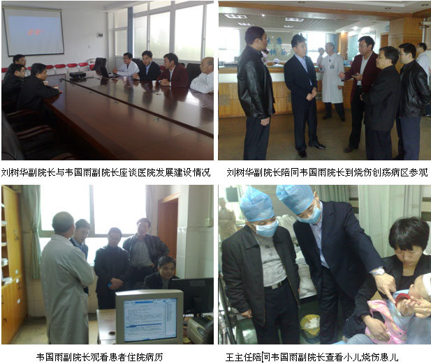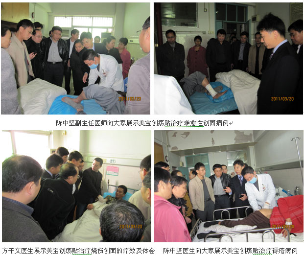2011年3月21日上午9時30分,桂平市中醫(yī)院的韋國雨副院長、大骨科主任黎小琳副主任醫(yī)師、大外科主任黎海副主任醫(yī)師等4人在王洪生主任陪同下來到廣州市中西醫(yī)結(jié)合醫(yī)院參觀交流,廣州市中西醫(yī)結(jié)合醫(yī)院主管副院長劉樹華副主任醫(yī)師、大外科主任張向東副主任醫(yī)師親自到醫(yī)院大門迎接。韋國雨一行首先在劉樹華副院長及張向東主任的陪同下來到該醫(yī)院住院大樓6樓燒傷創(chuàng)瘍科參觀,主治醫(yī)師劉平洪帶領(lǐng)大家深入燒傷創(chuàng)瘍病房,查看正在該科住院的燒傷、脈管炎合并下肢潰瘍、褥瘡、糖尿病足等患者,并親自為患者換藥示范皮膚原位再生復原醫(yī)療技術(shù)規(guī)范的創(chuàng)面處理技術(shù)。查房結(jié)束后,韋國雨副院長一行又來到該院門診四樓小會議室,進行座談交流,在座談會上,首先劉樹華副院長介紹了該院的整體發(fā)展情況,隨后劉平洪主治醫(yī)師著重介紹了這幾年運用皮膚原位再生復原醫(yī)療技術(shù)治療大面積深度燒傷及糖尿病足等難愈性創(chuàng)面典型臨床病例資料。在座談會結(jié)束后,韋國雨副院長對劉樹華副院長地熱情接待表示了衷心感謝,他說,我們廣東、廣西同飲一江水,希望以后進一步加強兩院之間的交流,以增進友誼,相互學習,相互借鑒好的技術(shù),共同發(fā)展,共同提高。