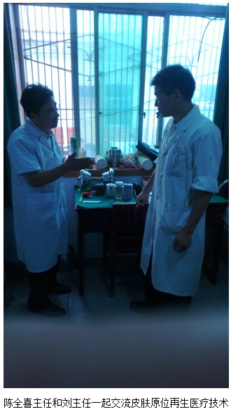 靈寶市中醫(yī)院是河南省最邊遠(yuǎn)的一個(gè)縣級(jí)市,西靠山西,南與西峽為鄰。是河南省最大、最多的金礦業(yè)區(qū)。2012年7月21日,應(yīng)中醫(yī)院骨外一科、骨外三科和普外科主任的邀請(qǐng),中國(guó)中西醫(yī)結(jié)合學(xué)會(huì)燒傷專(zhuān)業(yè)委員會(huì)委員、北京美寶燒傷創(chuàng)瘍研究所臨床部專(zhuān)家陳全喜來(lái)到中醫(yī)院骨科會(huì)診,并進(jìn)行了皮膚原位再生醫(yī)療技術(shù)的交流。
